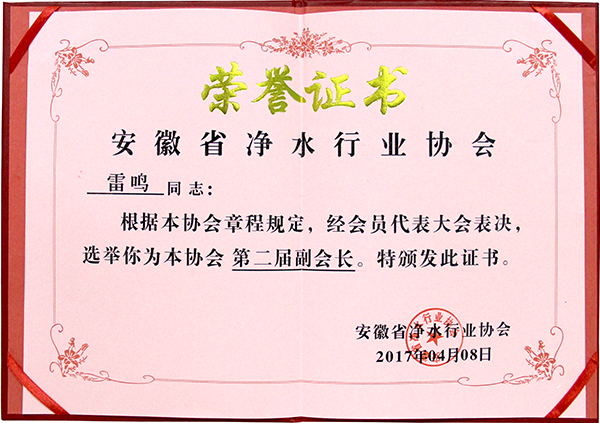 • 熱烈祝賀榮事達水工業公司董事長雷鳴連任安徽省凈水行業協會副會長