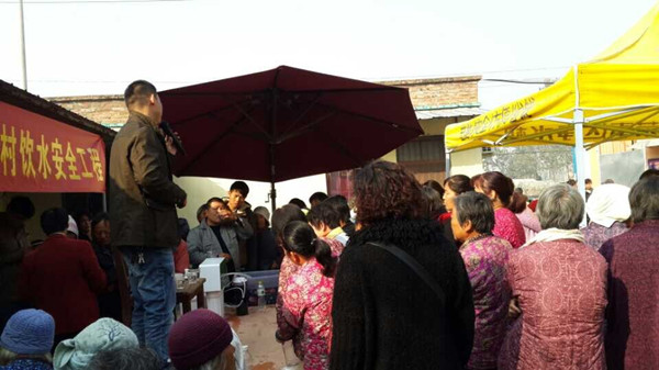 此次活動受到豐縣廣大村民的熱烈歡迎,見到了產(chǎn)品功效,嘗到甘甜的純凈水,許多村民現(xiàn)場即預(yù)訂了產(chǎn)品。短短十多天,當(dāng)?shù)卮砩桃褳?00多戶村民家庭安裝凈水機(jī),接上了安全水。