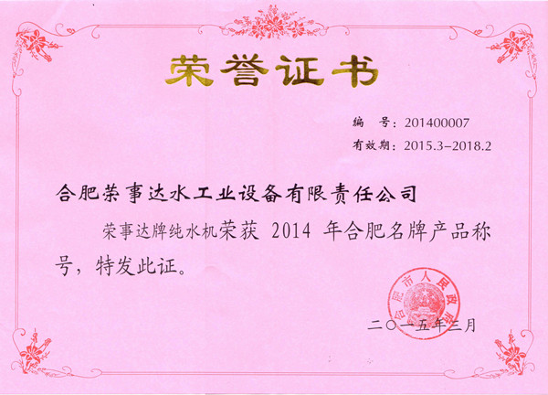 經(jīng)過企業(yè)自愿申請,各相關(guān)行業(yè)主管部門和縣(市)、區(qū)、開發(fā)區(qū)推薦,專家組綜合評價,市質(zhì)量工作聯(lián)席會議審議通過并向社會公示多重嚴(yán)格篩選程序,合肥榮事達(dá)水工業(yè)設(shè)備有限責(zé)任公司、安徽佳通輪胎有限公司、合肥江淮鑄造有限責(zé)任公司等企業(yè)的19個產(chǎn)品被評定為2014年合肥名牌產(chǎn)品。