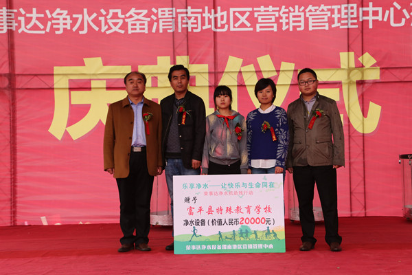 2015年1月12日,榮事達水工業公司與安徽省青年志愿者協會共同發起了一項范圍覆蓋全國的大型助殘公益行動“樂享凈水——讓快樂與生命同在”。此次活動通過向不符合“國家生活飲用水衛生標準”的康復中心、特殊學校、助殘機構等捐贈凈水設備以及提供志愿服務,積極改善當地殘疾人的飲水生活狀態,以實際行動喚起社會對殘疾群體的重視與關愛。