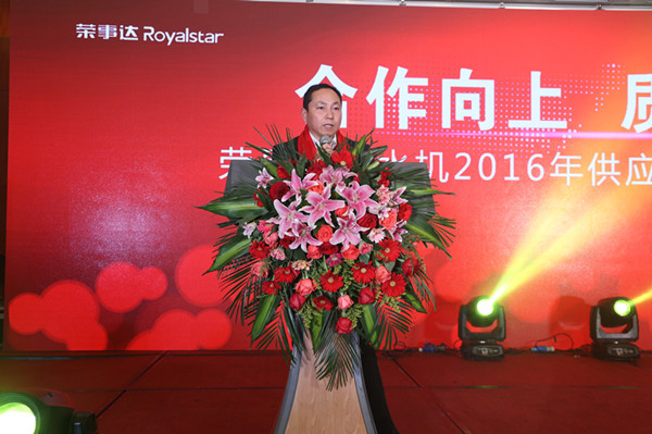隨后,公司技術(shù)部部長江正山從技術(shù)層面出發(fā),希望合作企業(yè)嚴(yán)把質(zhì)量關(guān),為榮事達(dá)生產(chǎn)優(yōu)質(zhì)產(chǎn)品提供源頭保證。生產(chǎn)制造中心總經(jīng)理孫曉峰介紹了2015年與供應(yīng)商在產(chǎn)品質(zhì)量、生產(chǎn)技術(shù)等合作中取得的進(jìn)步,并針對公司產(chǎn)品更新?lián)Q代對零部件供應(yīng)提出新的更高要求。孫總與在座的供應(yīng)商朋友分享了榮事達(dá)的“新和商”精神,帶領(lǐng)大家進(jìn)行了莊嚴(yán)的宣誓,共同表達(dá)了“合作向上、質(zhì)贏天下”的決心和干勁。凈水家電事業(yè)部總經(jīng)理王悅生闡述了2015年榮事達(dá)凈水機(jī)在終端市場的銷售盛況,希望在廣大供應(yīng)商的配合下,實(shí)現(xiàn)優(yōu)質(zhì)產(chǎn)品和強(qiáng)勢營銷的完美結(jié)合,給廣大消費(fèi)者提供更優(yōu)質(zhì)、更周到的凈水體驗(yàn)。