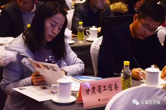 與會代表閱讀由安徽省經(jīng)信委編輯的《兩化融合在行動》一書(安徽經(jīng)濟(jì)報(bào)社出版)
