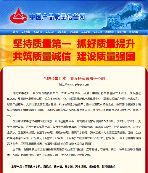 榮事達水工業集團以誠信立企,始終堅持貫徹落實國家質量強國戰略要求,將質量管理作為企業經營管理第一要務。企業憑借卓越的品質與產品口碑被評為國家工信部首批“綠色制造示范企業”,并榮獲“安徽省名牌產品”“泰利斯卓越產品獎”“消費者滿意品牌”“全國質量誠信優秀企業”“全國立信單位”等諸多榮譽。