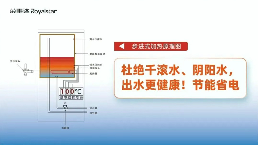 設備采用了多級過濾與RO反滲透技術,能夠有效濾除水中的泥沙、鐵銹、重金屬、余氯等有害物質,確保水質干凈、安全,出水達到直飲標準。同時,步進式加熱設計避免了“陰陽水”的產生,保證了連續(xù)供應開水的品質。