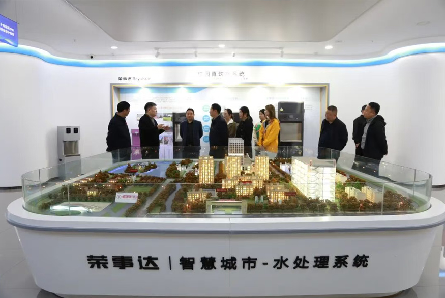 展廳內,集團全屋智慧凈水、管道直飲水、校園智慧飲水、單位/工廠直飲水等全領域凈水市場的技術實力與綜合布局得到了充分展現。參觀過程中,代表們對榮事達水工業的前沿技術、成熟項目與戰略眼光給予了高度評價與認可。