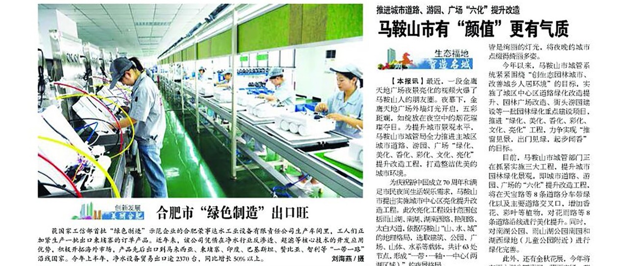 厲害了!!《歐洲時報》魅力安徽專版報道 榮事達(dá)綠色制造出口旺 一帶一路暢銷海外【報道原文】 獲國家工信部首批“綠色制造”示范企業(yè)的合肥榮事達(dá)水...