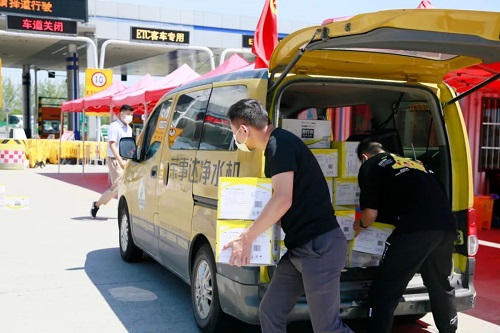8月6日上午,團市委書記馬進偉、合肥市青年志愿者協會相關領導、榮事達水工業(yè)集團董事長雷鳴一行人來到蜀山高速道口看望正在辛苦奮戰(zhàn)在一線的青年志愿者們,為他們帶來了蘇打水、淡鹽水等飲品。