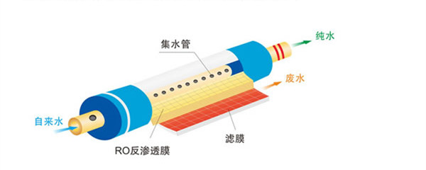 第四級(jí)是RO膜,經(jīng)過(guò)前三級(jí)濾芯處理后,水中部分較大的雜質(zhì)已經(jīng)被排除了,RO膜孔徑在0.001微米,主要去除水中除純水之外的其他細(xì)小污染物,如:細(xì)菌、病毒、余氯等。